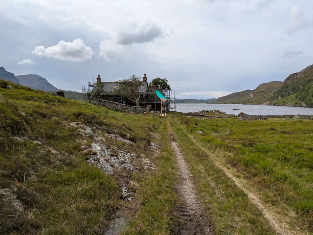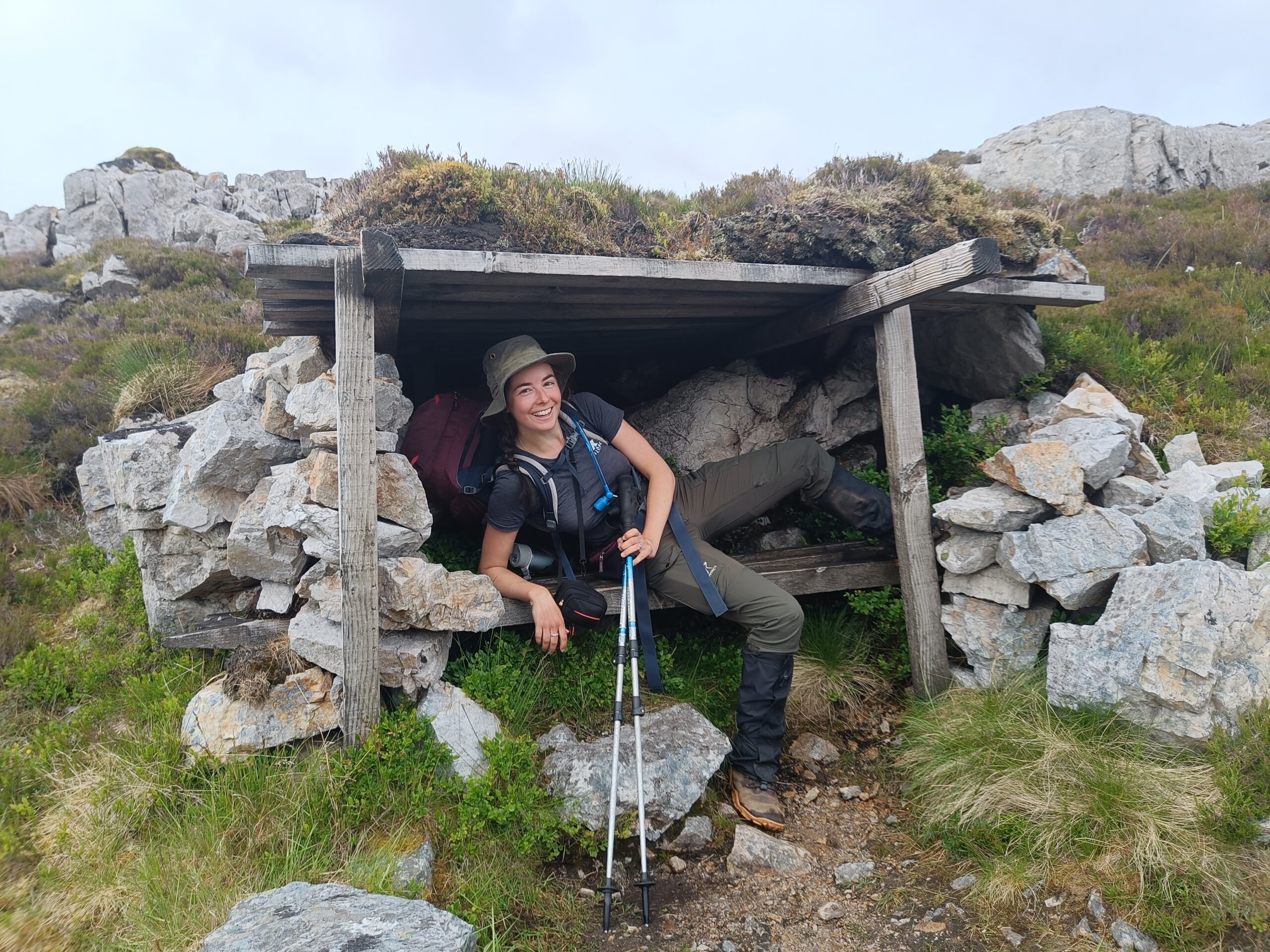 On a fait une pause snacks au bothy, qui était en train d’être rénové. Il y avait encore un toit quand on y était, mais apparemment ce n’était plus le cas le lendemain — et il pleuvait à l’intérieur quand nos amis australiens Alex et Carmen y étaient, oups. ^^’