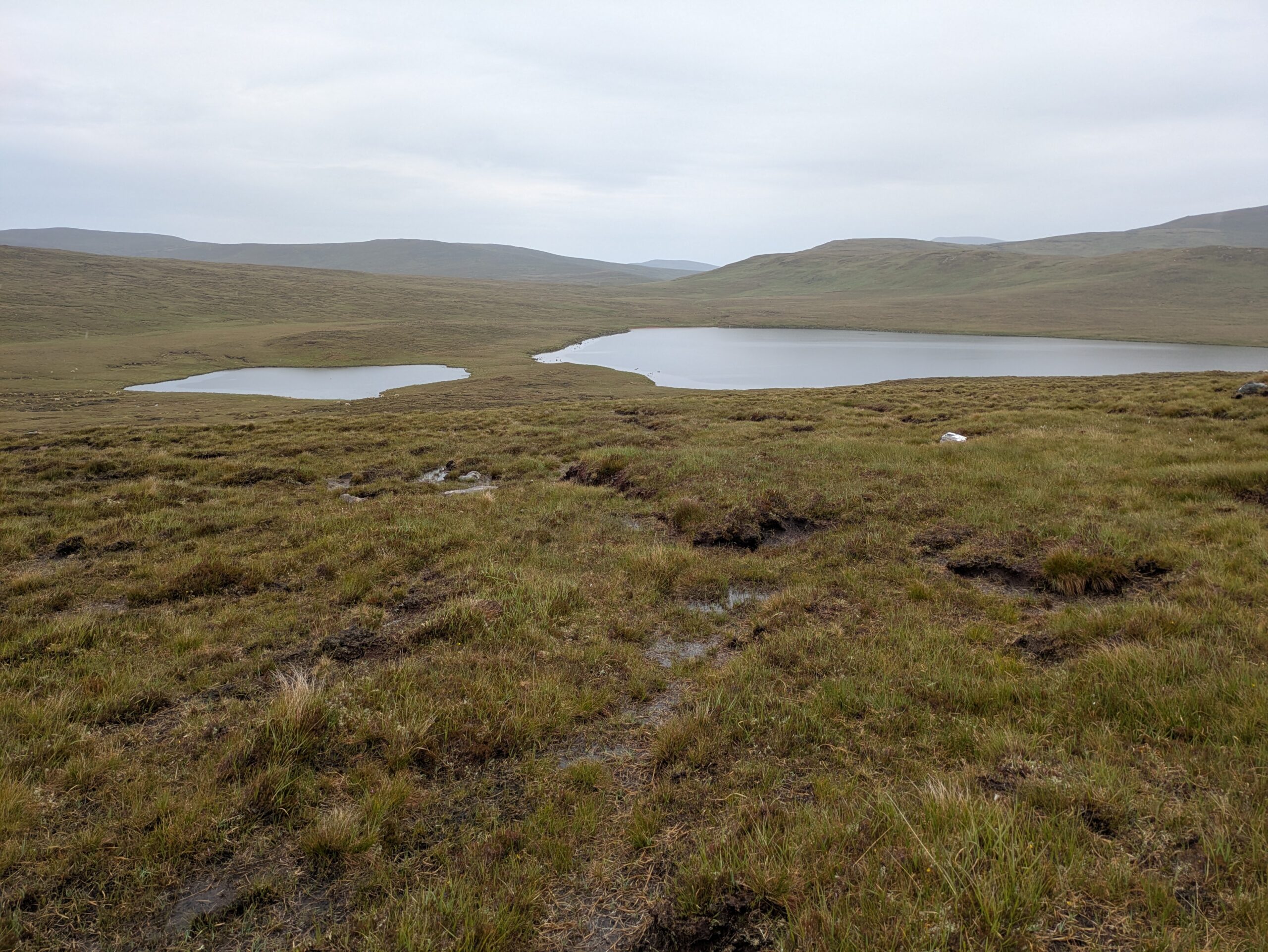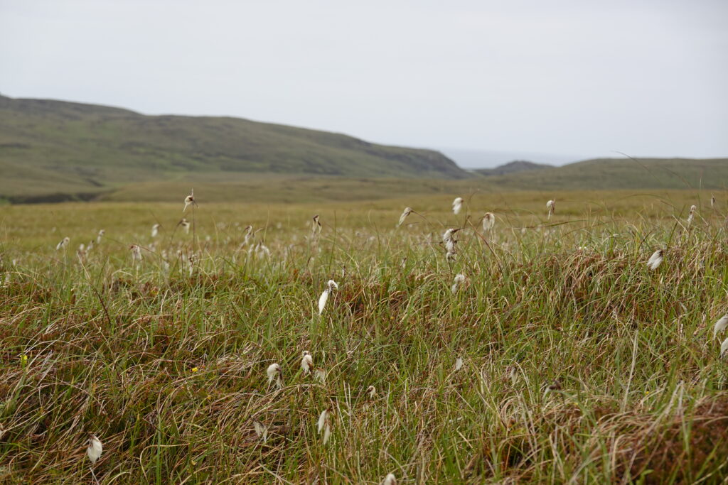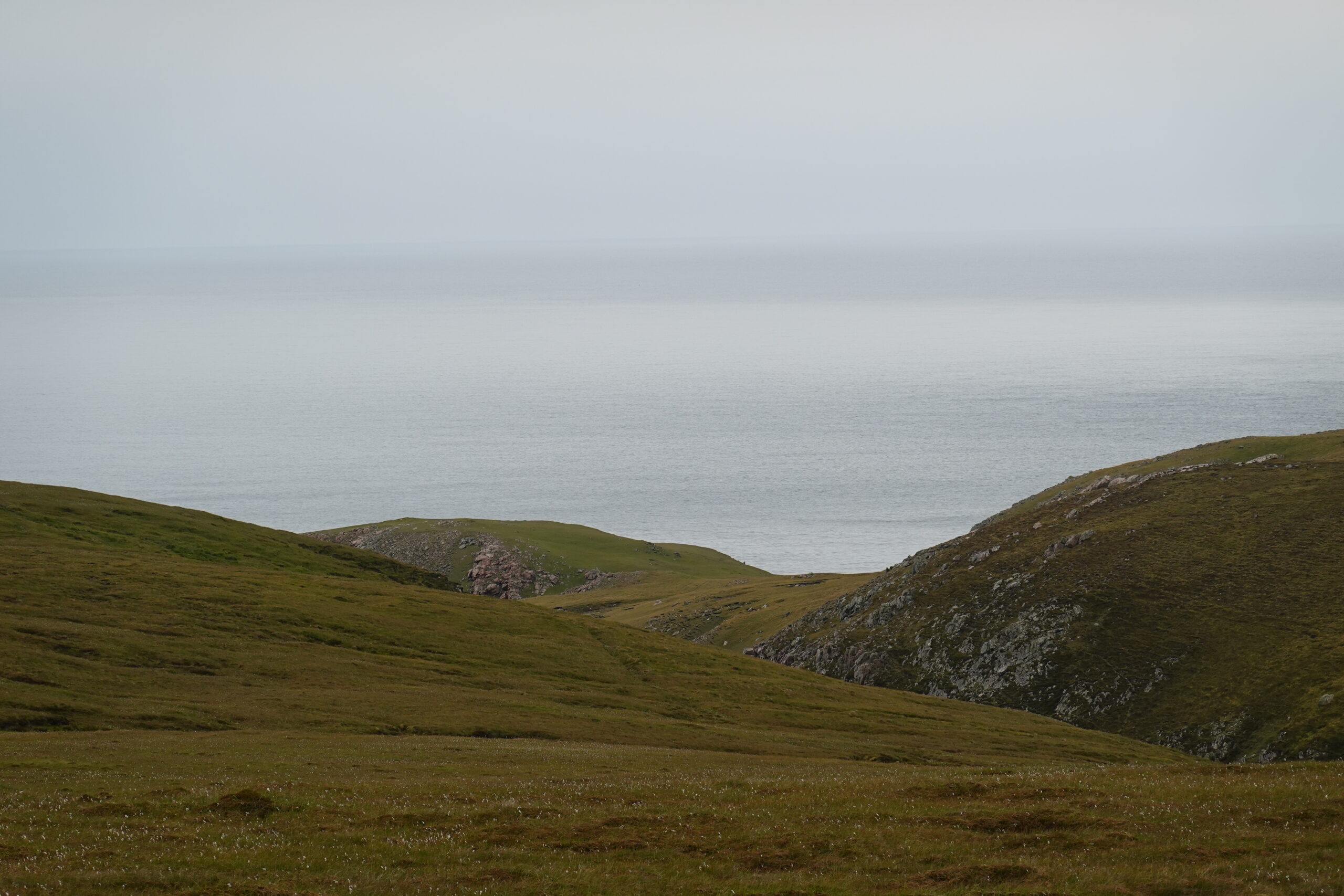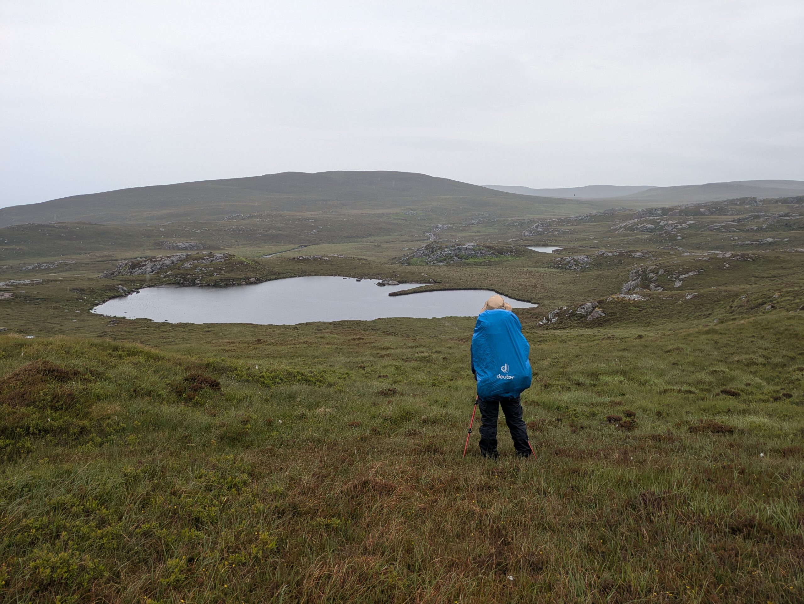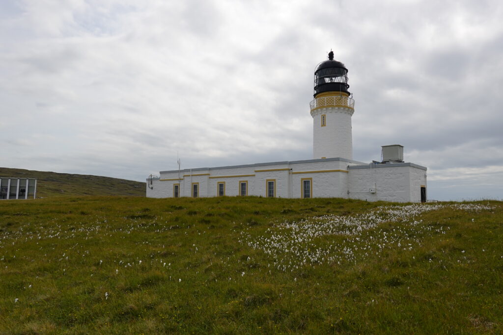 Bref, on attaque les 12 km qui nous séparent de Cape Wrath, le tout sans sentier, à travers la tourbière. On prend l’option côtière, plus difficile (car avec plus de dénivelé) mais bien plus motivante, avec des vues régulières sur les falaises et le phare au loin.