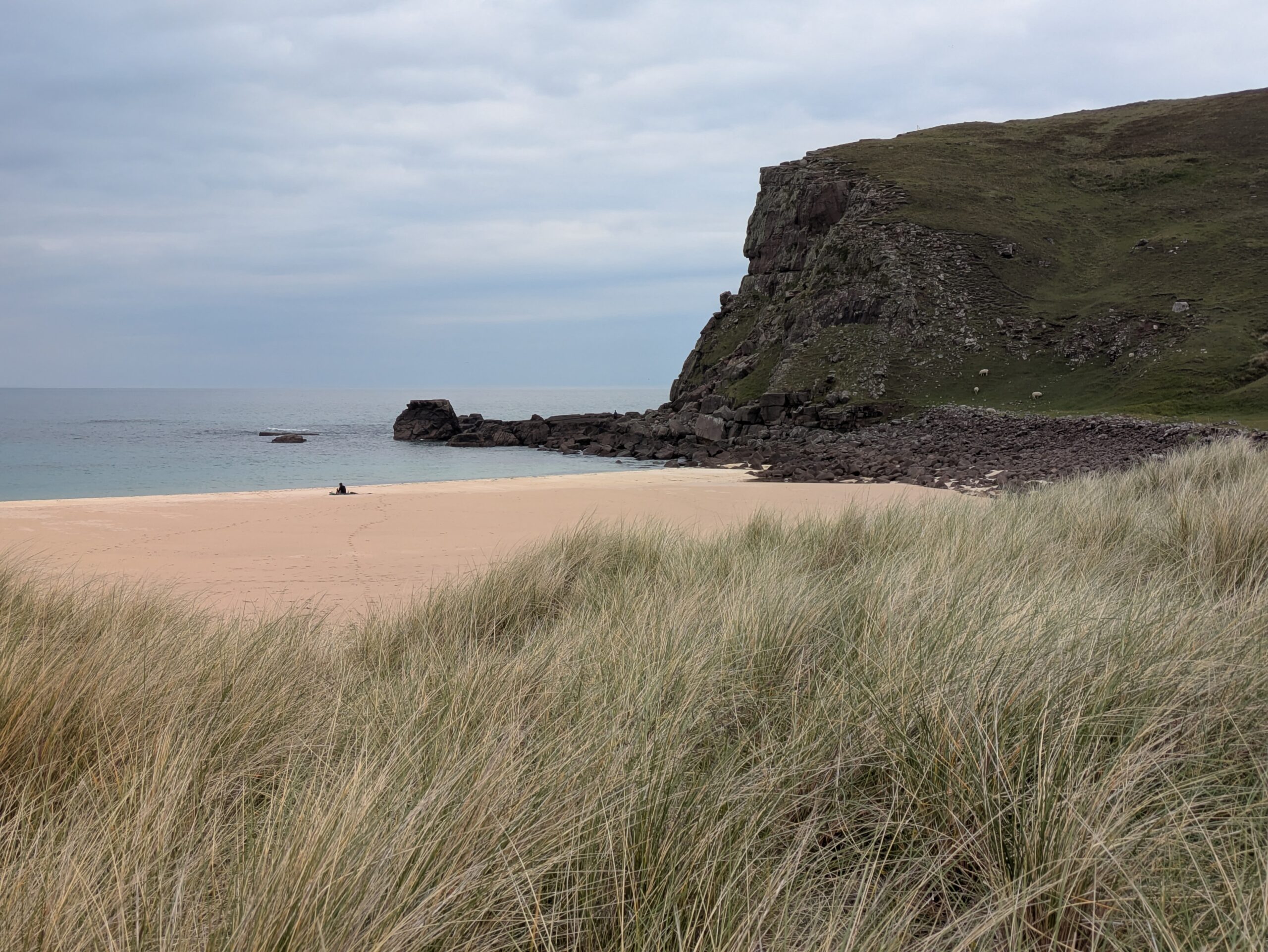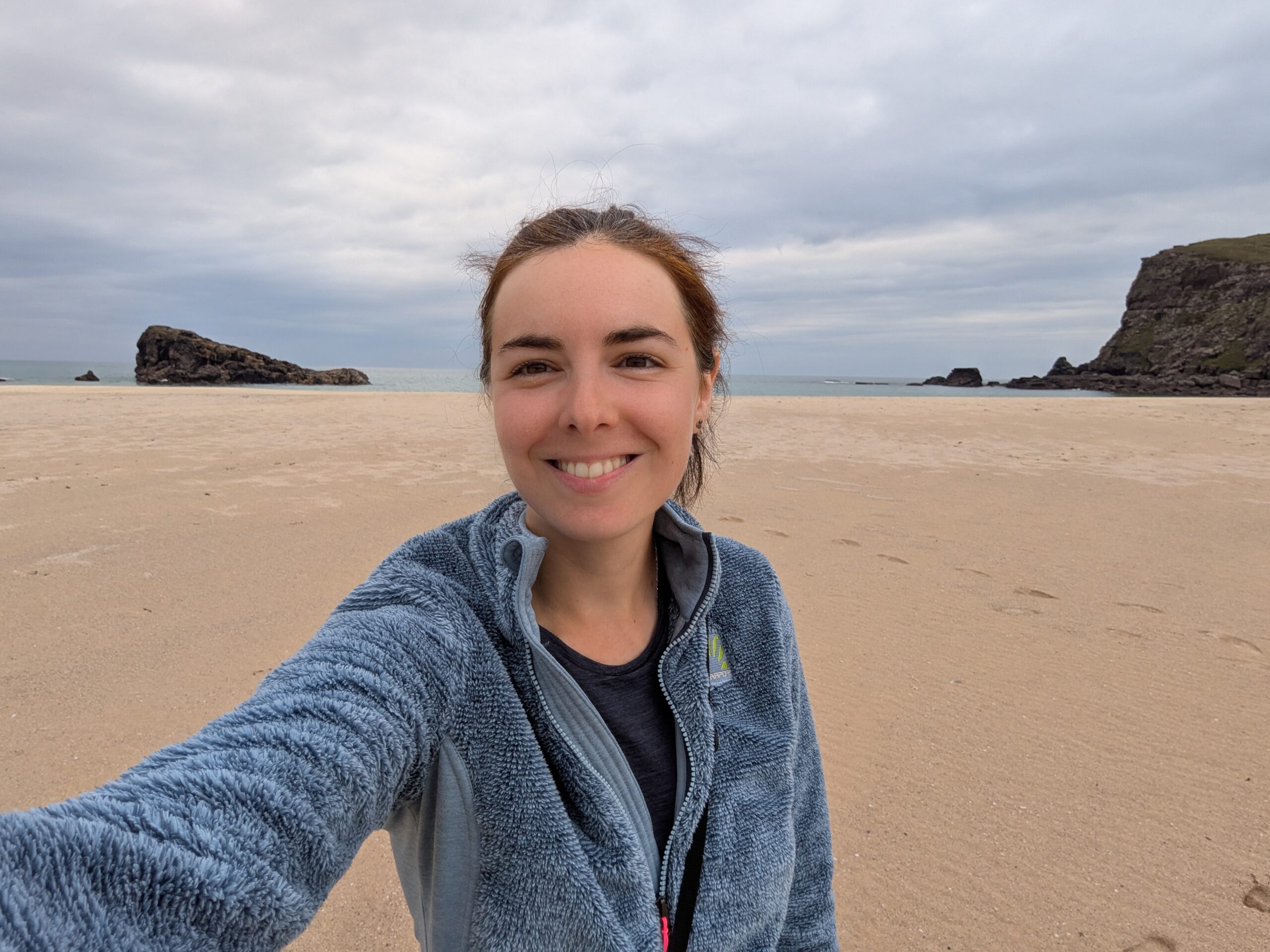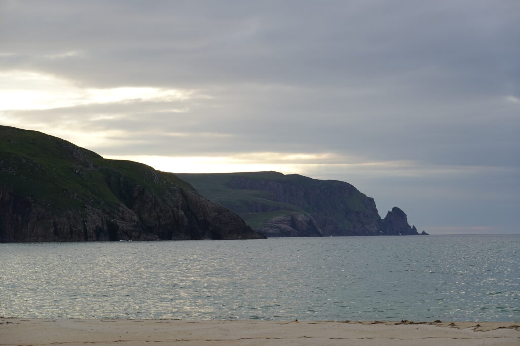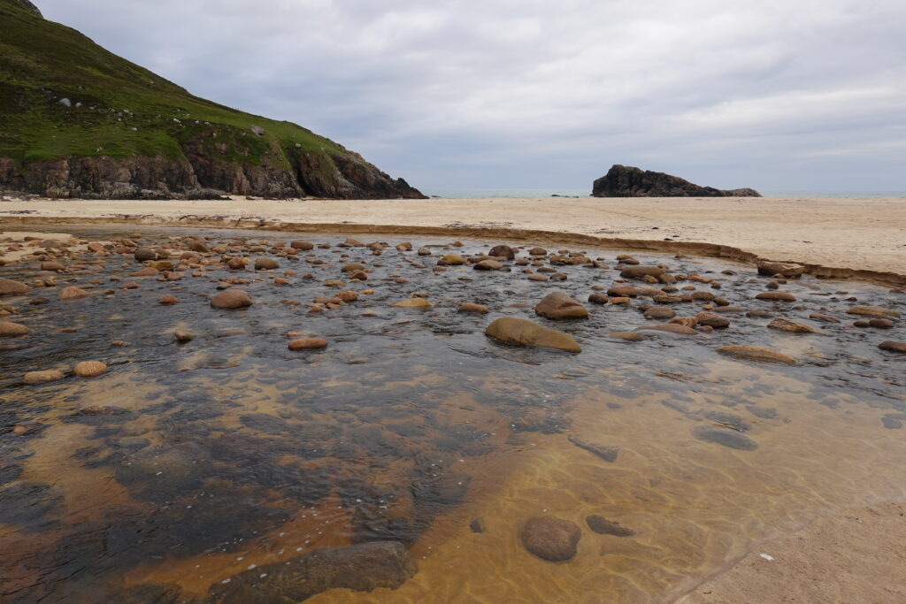 Malgré la météo un peu maussade, Sandwood Bay nous a offert une claque visuelle: quel lieu grandiose! (Les notes dans mon carnet précisent carrément “best poop view ever!” ^^’)
