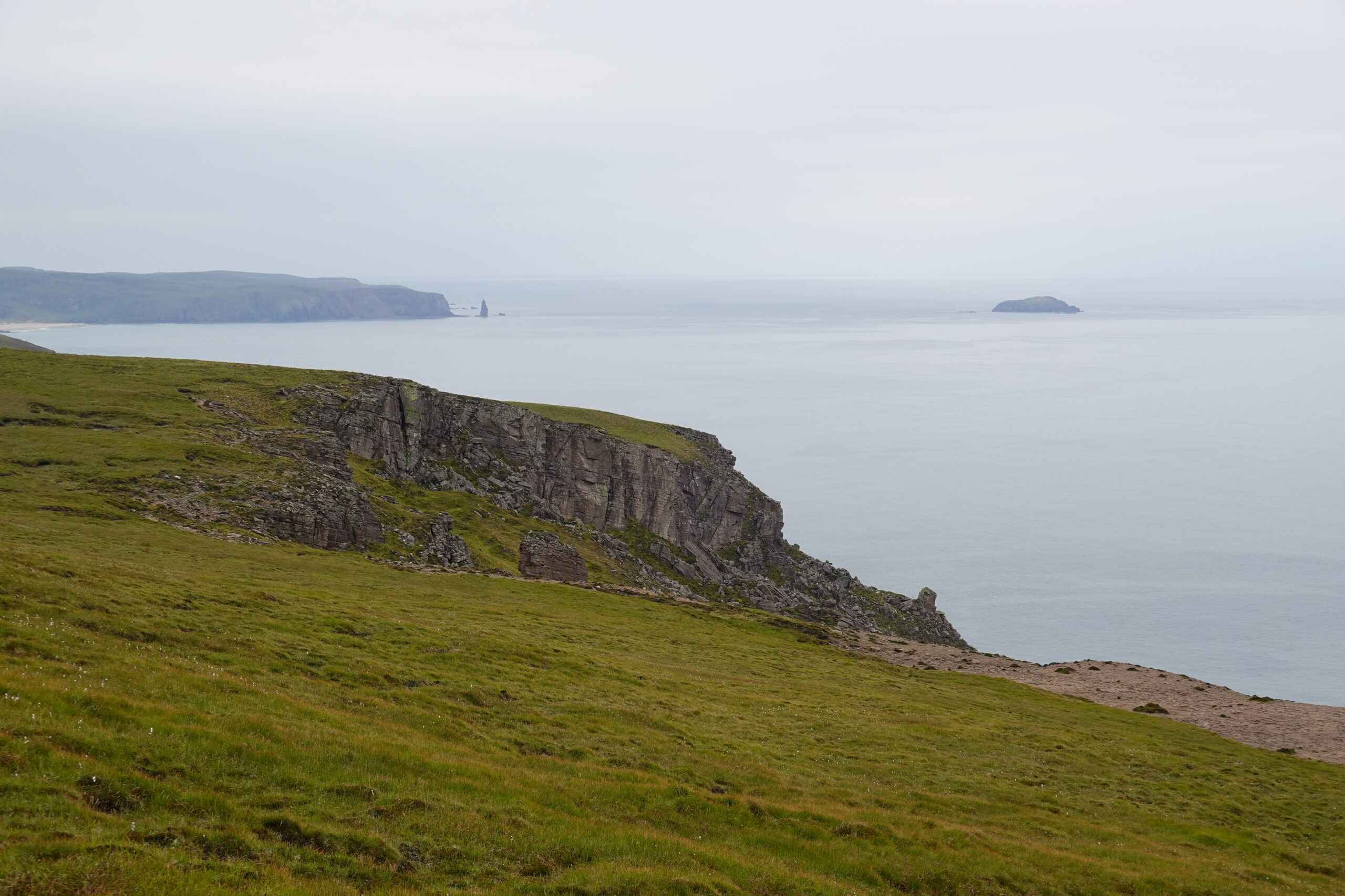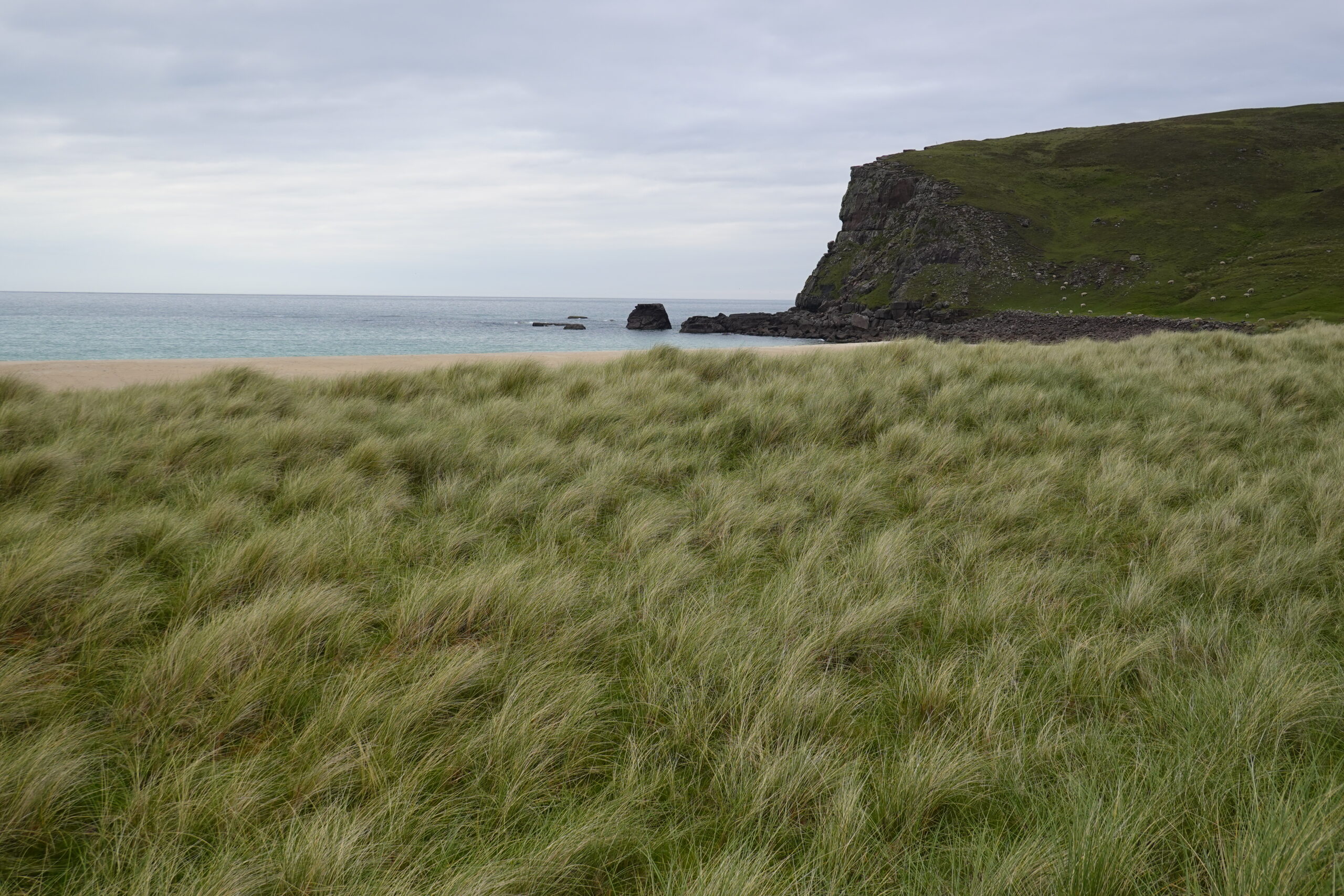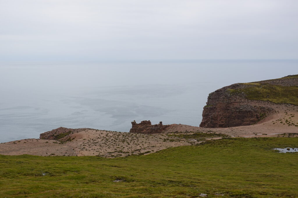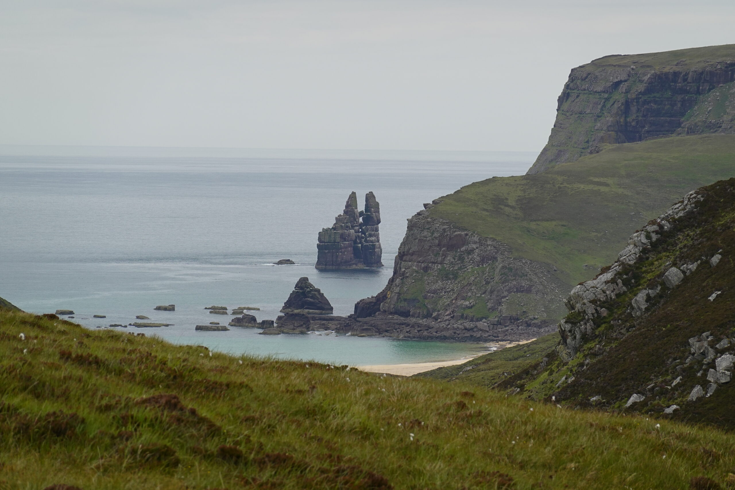 Malgré la météo un peu maussade, Sandwood Bay nous a offert une claque visuelle: quel lieu grandiose! (Les notes dans mon carnet précisent carrément “best poop view ever!” ^^’)