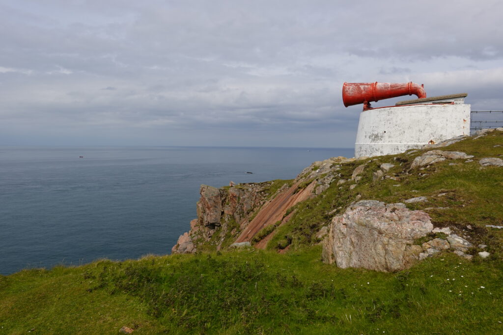 On se pose à l’Ozone Café pour un sandwich et thé froid (le menu est très basique, car l’approvisionnement dans le coin n’est pas facile ^^) et on y retrouve John et Joey (père et fils très sympathiques venant de Cornwall), partis de Sandwood Bay à 6h du matin et qui ont prévu de dormir dans le dortoir de Cape Wrath, situé dans l’ancienne salle des machines du phare (tout comme le café, d’ailleurs).