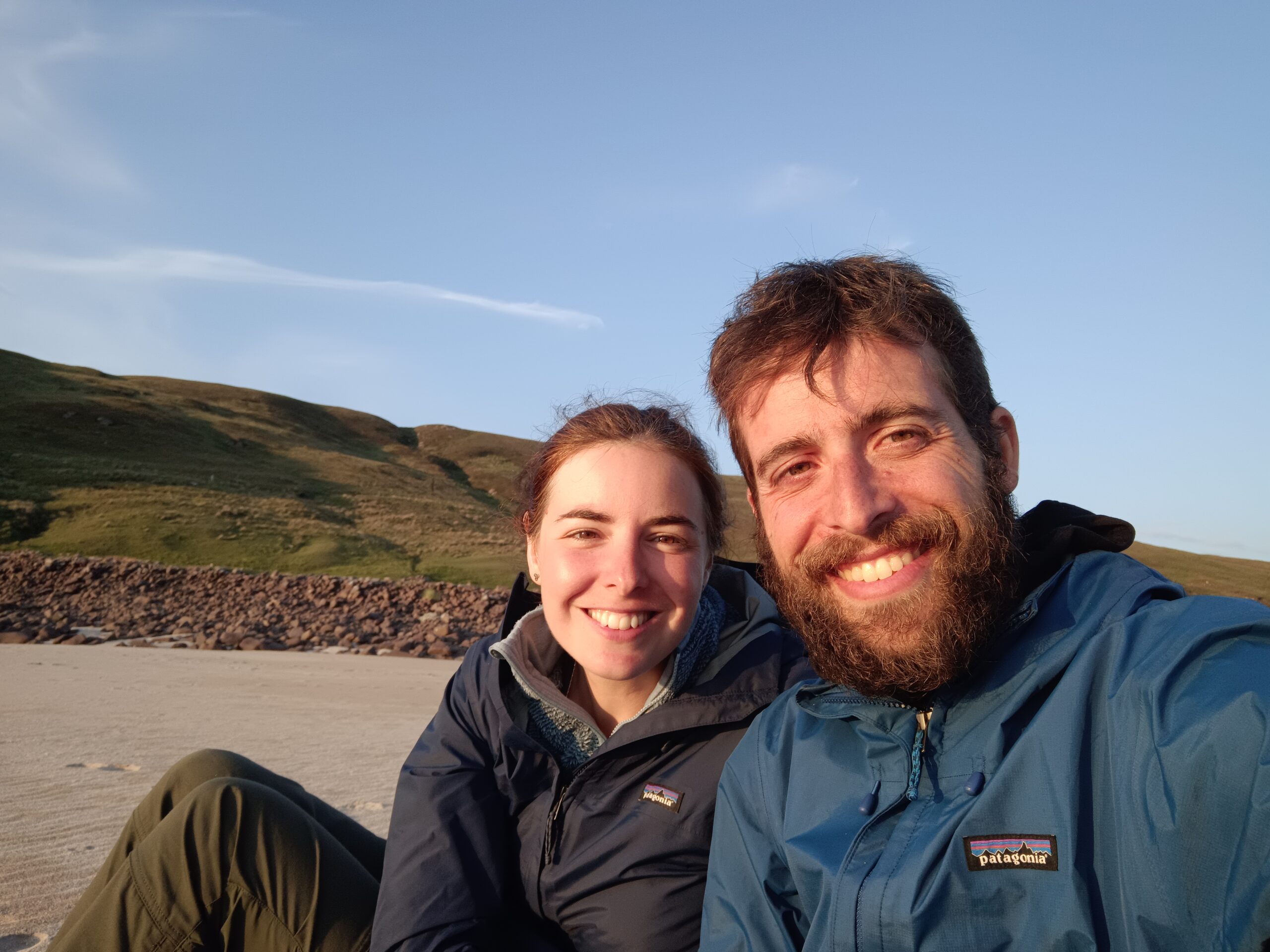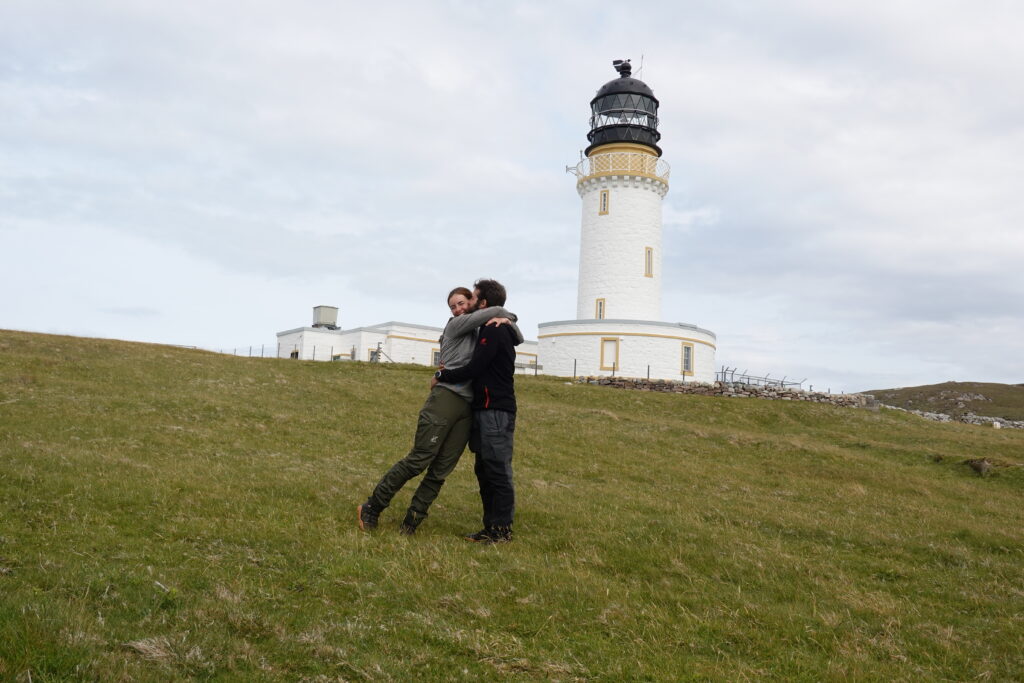 On aimerait prendre quelques photos goofy tout seuls pour marquer le coup, mais l’Allemand rencontré en arrivant (bien que sympathique) est un peu (beaucoup) pot de colle et on a de la peine à lui faire comprendre qu’on aimerait bien un moment juste tous les deux. Il continuait sa rando jusqu’à Sandwood Bay et proposait de nous attendre pour remarcher 1 km ensemble sur le track, mais on n’avait pas spécialement envie car on souhaitait plus de temps tranquille, juste José et moi, pour marquer notre arrivée et prendre la mesure de notre épopée quasi achevée. Diverses voies plus ou moins subtiles ayant complètement échoué, on a dû être bien plus directs (en mode plus allemand, quoi ^^) et il a fini par comprendre et nous laisser seuls.