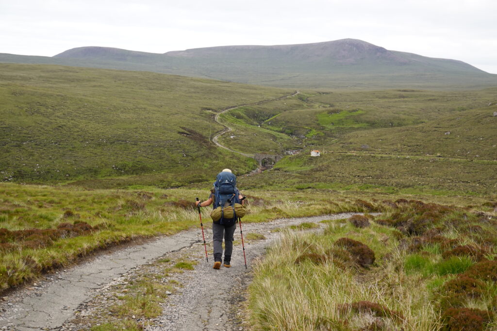 Puis on renfile les sacs et on reprend le track pour marcher les quelque 8 km nous séparant de Kearvaig bothy, au sud-est de Cape Wrath.