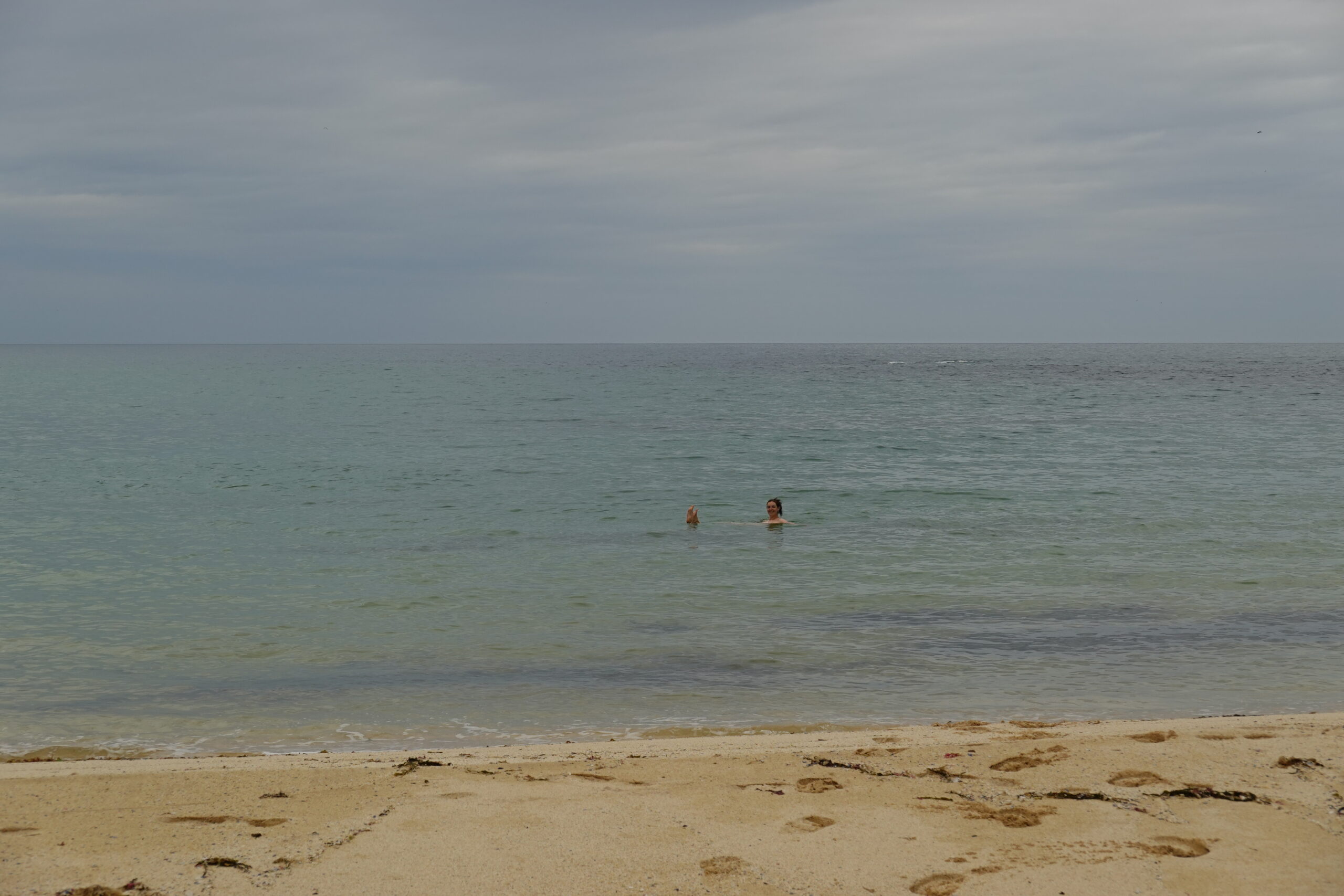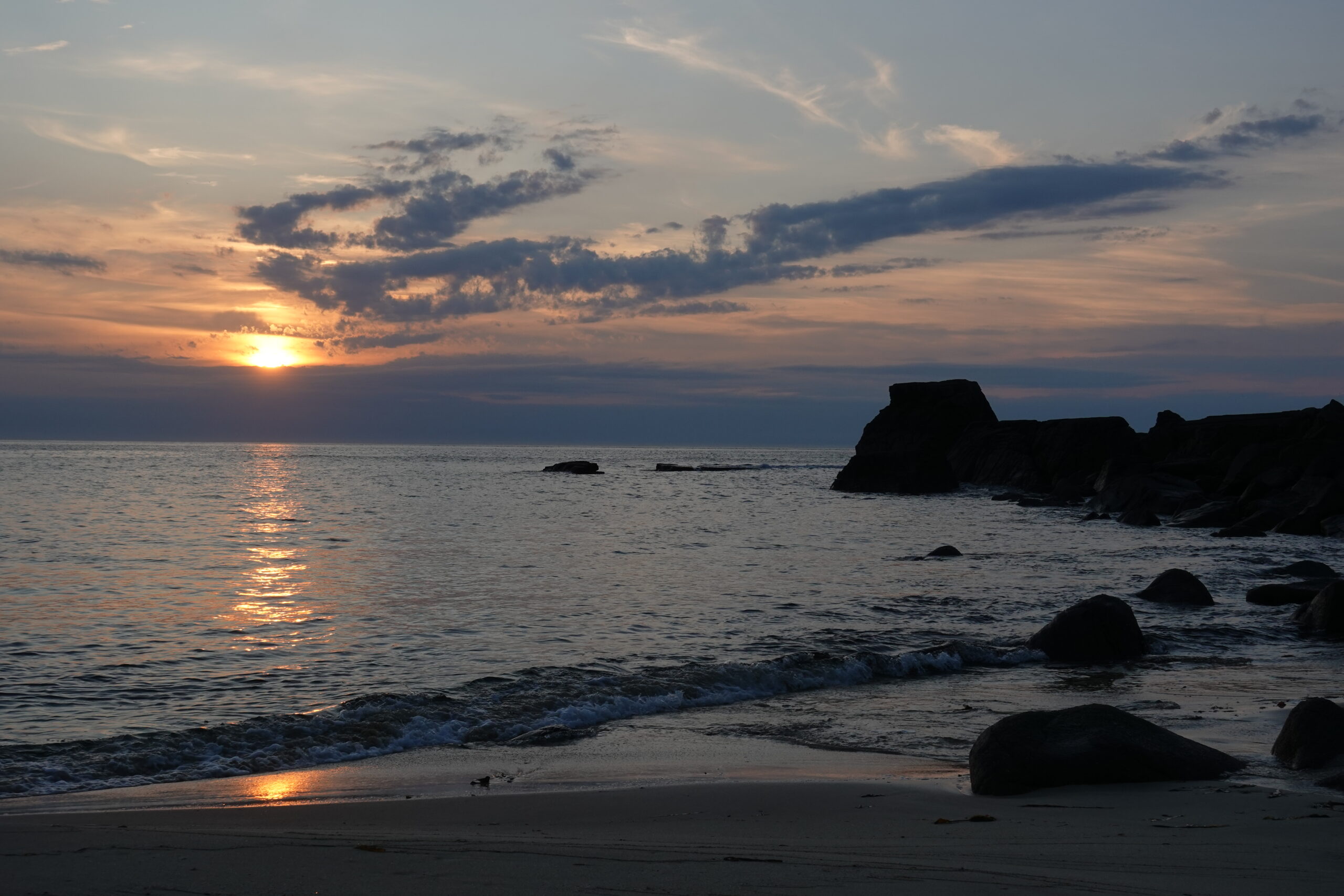 Alors qu’on savoure nos cidres, une tête sort de l’eau juste devant nous: un phoque, enfin! Là aussi, c’est le premier de ce voyage. Il est curieux et nous observe vraiment pas loin de la plage, plongeant de temps à autre pour refaire surface juste à côté, avant de finalement s’éloigner.