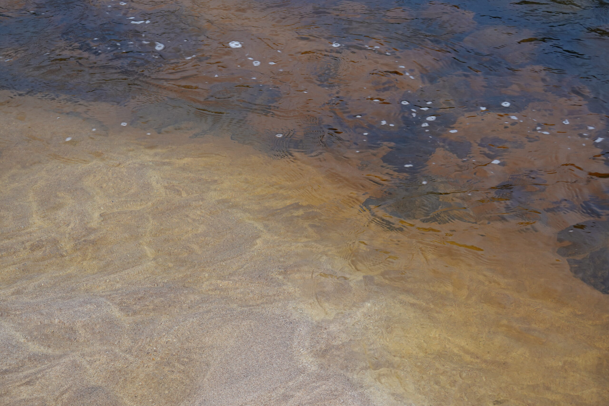 Un chemin de lumière se dessine sur l’eau, c’est si beau. Puis le soleil disparaît gentiment derrière un mur de nuages à l’horizon. On va prendre de l’eau à la rivière et on se lave les dents en admirant les dernières lueurs rose-rouge dans le ciel.