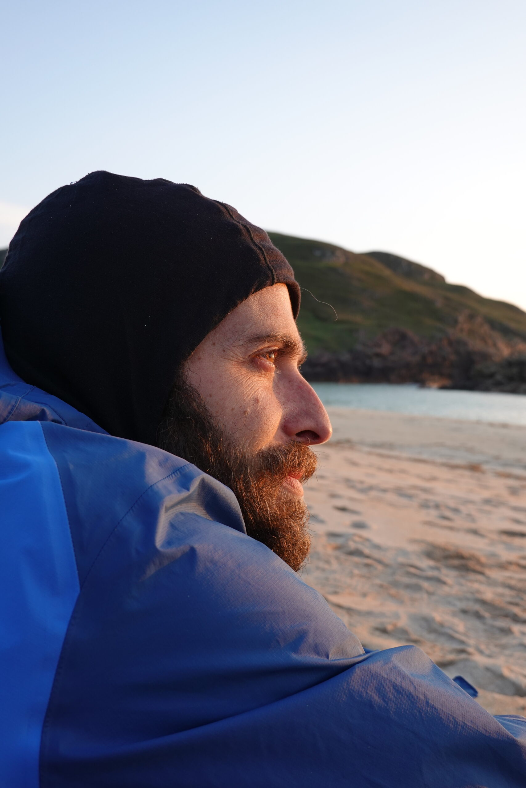 A peine arrivés, vers 18h30, on part se poser sur la splendide plage et on s’octroie une baignade rafraîchissante, héhé. C’était notre premier plouf depuis Cona Glen (lors de notre premier jour sur le CWT), ça datait! Je me sentais comme une selkie dans l’eau turquoise — et d’ailleurs, on a vu des phoques! ♥