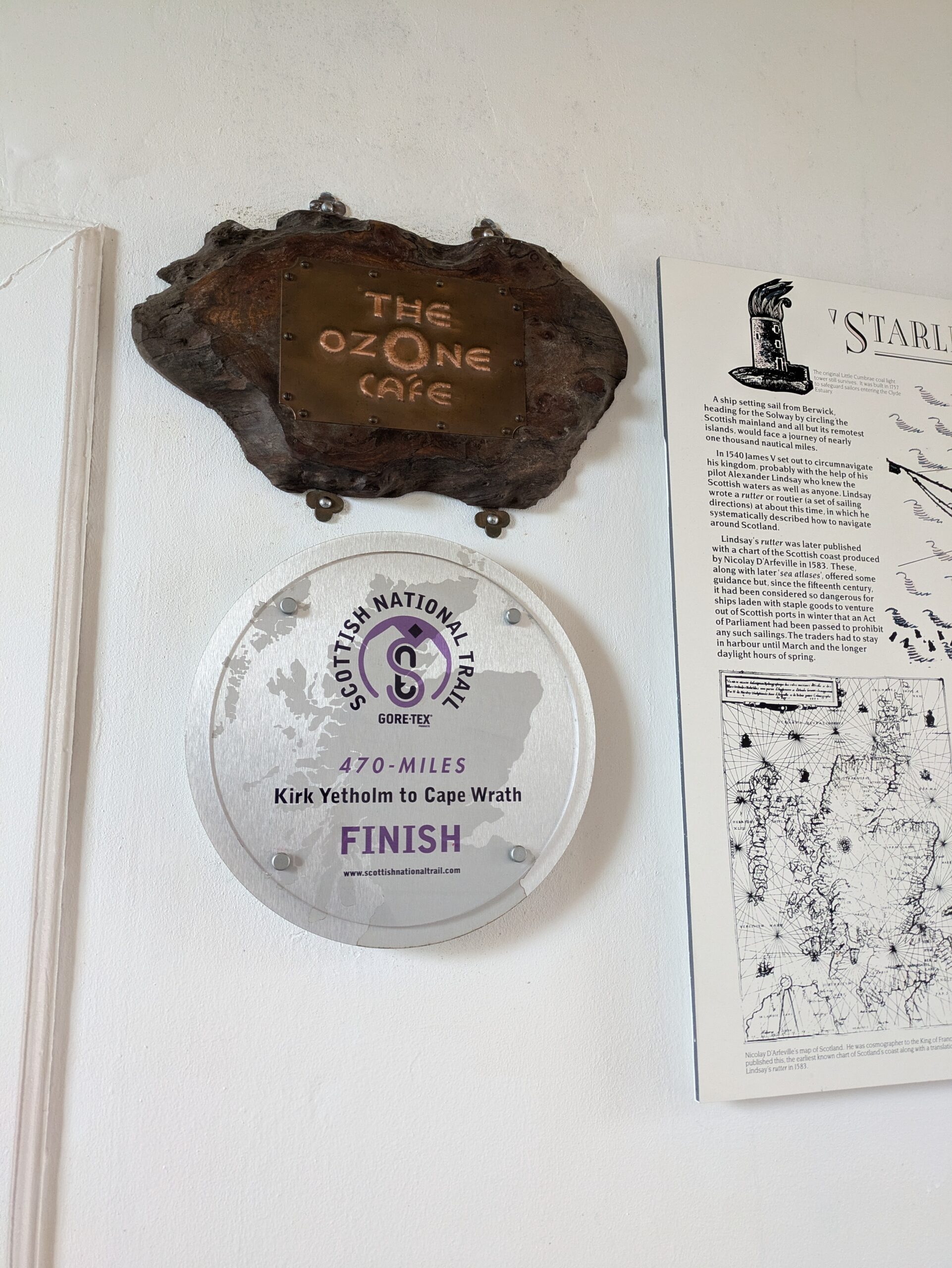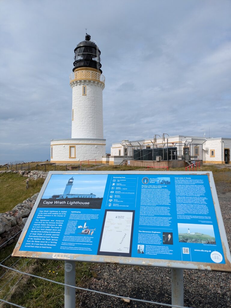 On discute un moment tous ensemble, c’est chouette. On achète aussi une carte postale du phare, sur laquelle le proprio du café appose le tampon du lieu (on l’a ensuite envoyée à nous-mêmes depuis Durness, et elle trône désormais sur notre frigo ^^), et on écrit un message dans le livre d’or, principalement rempli de mots émouvants laissés par les randonneurs du Cape Wrath Trail et du Scottish National Trail.
