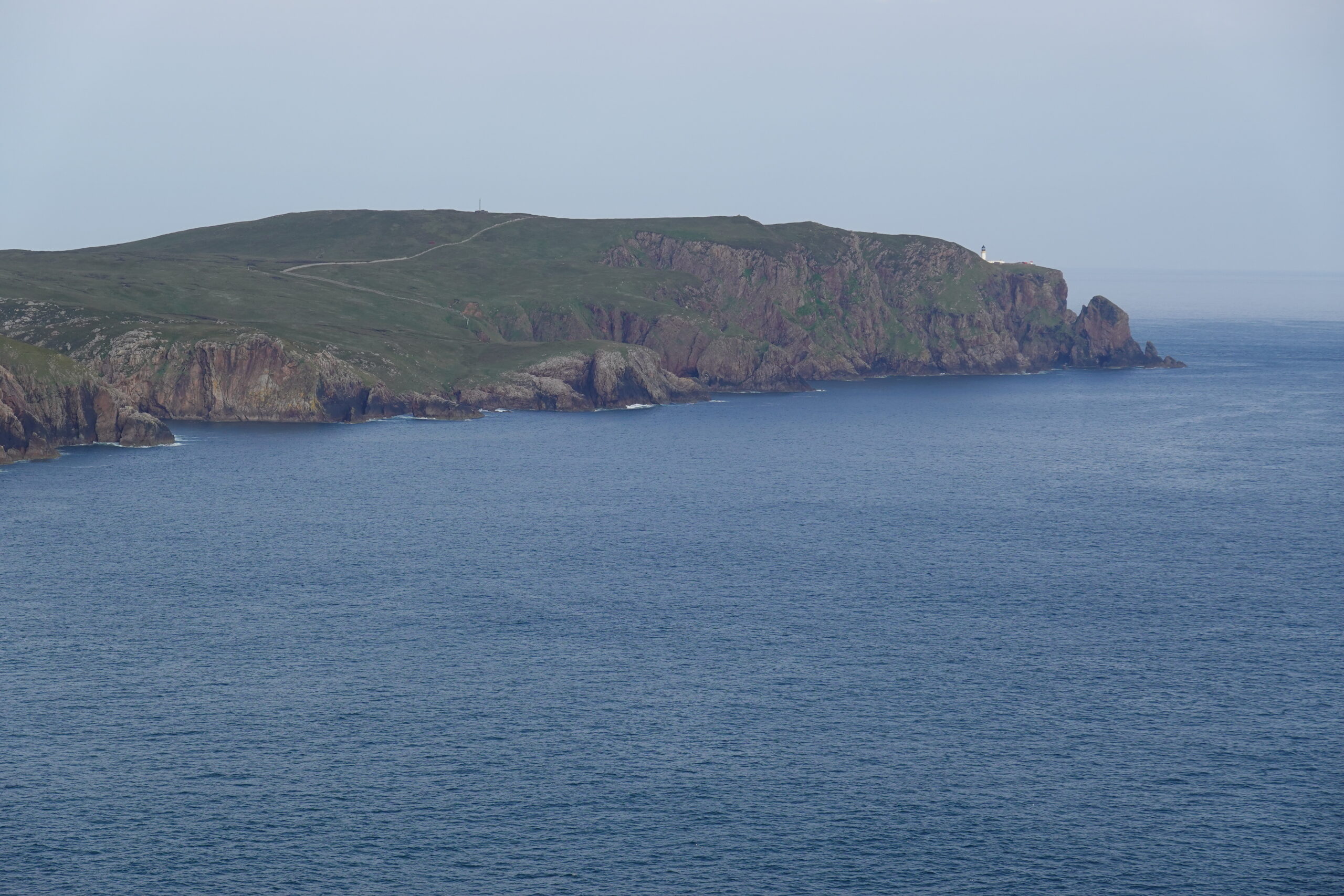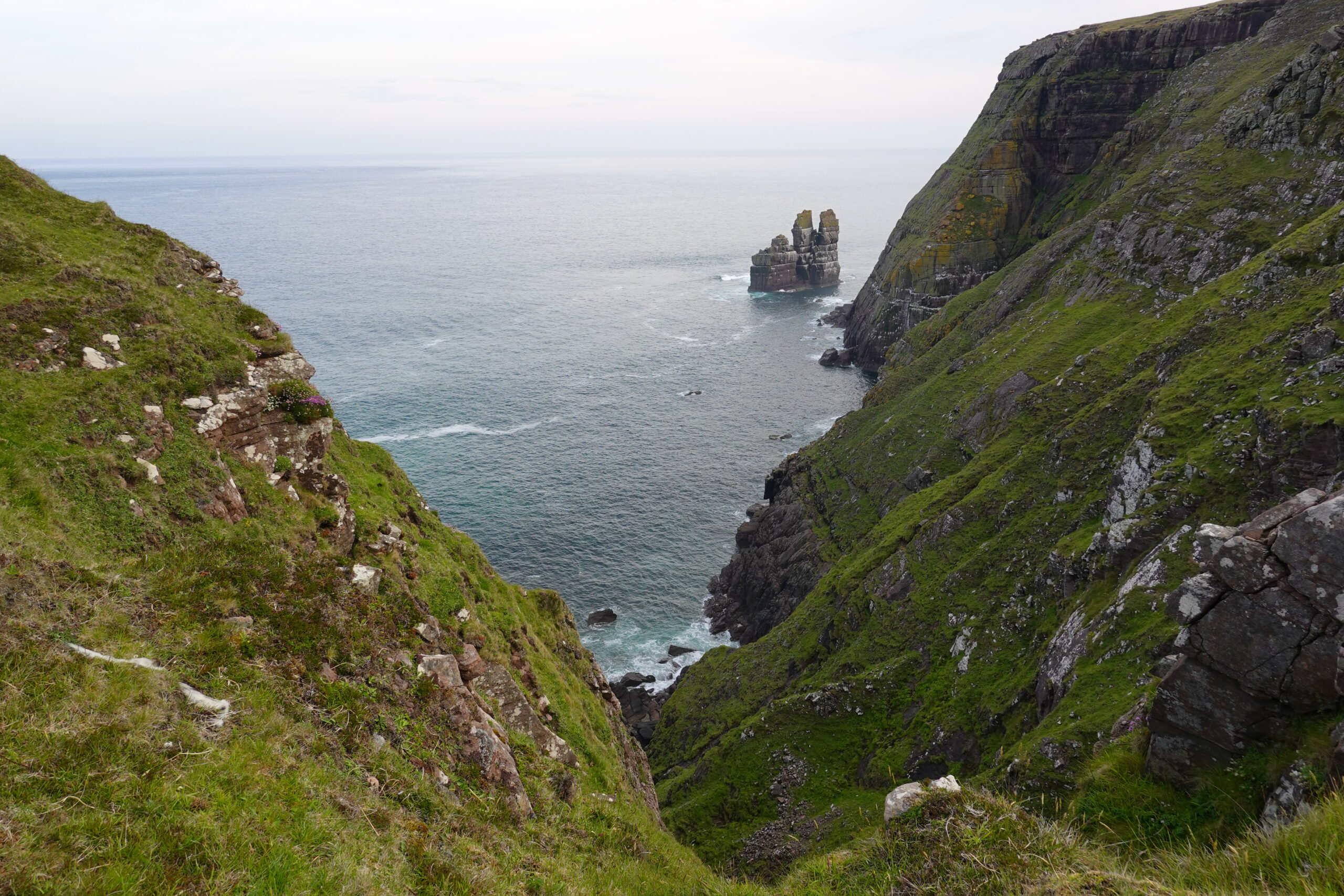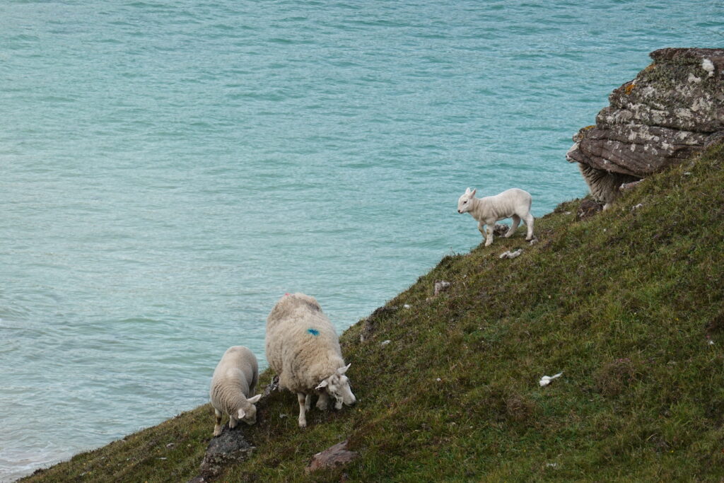 On s’est baladés sur les falaises à l’est de la baie, en espérant voir des puffins de plus près. Au début, on a surtout vu des moutons, paissant dans les pentes herbeuses ultra raides.