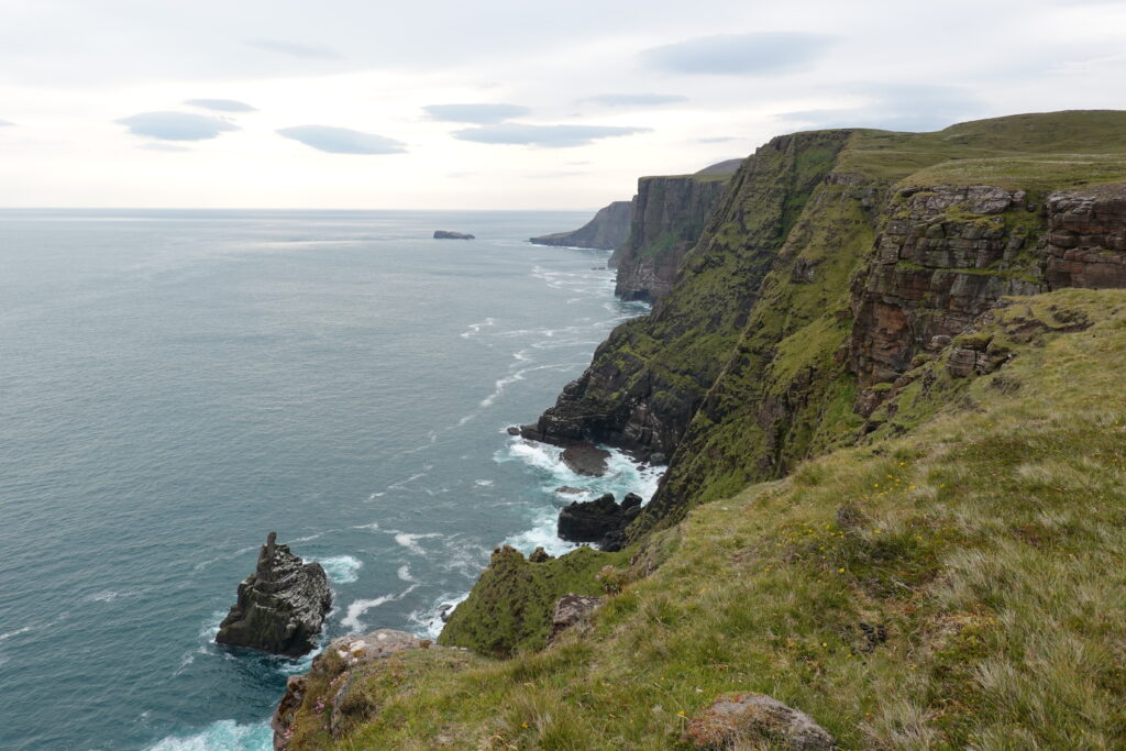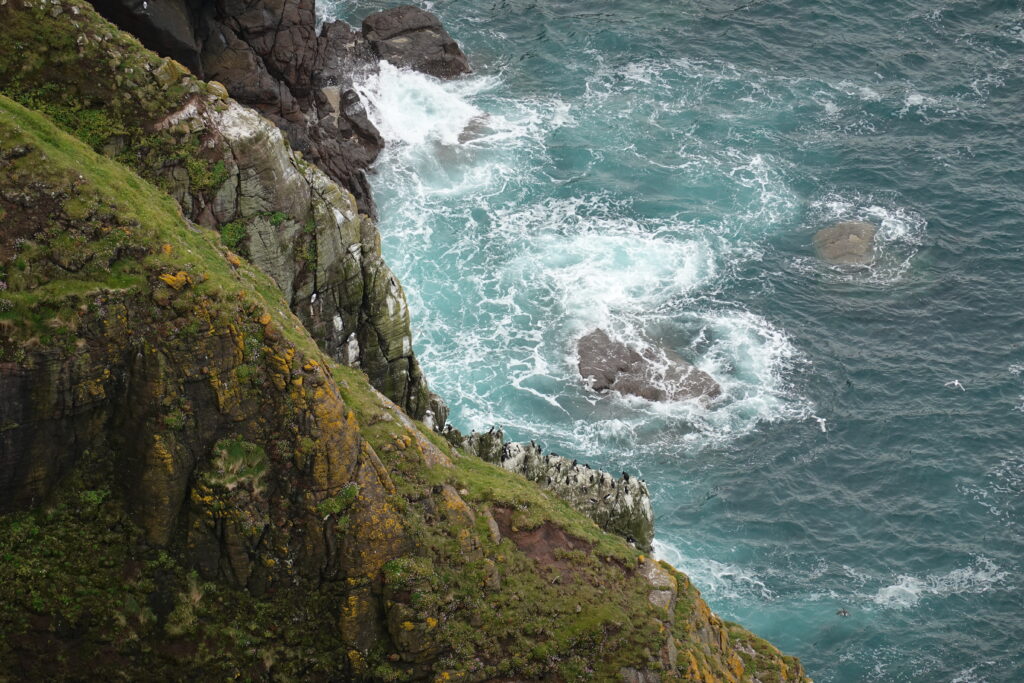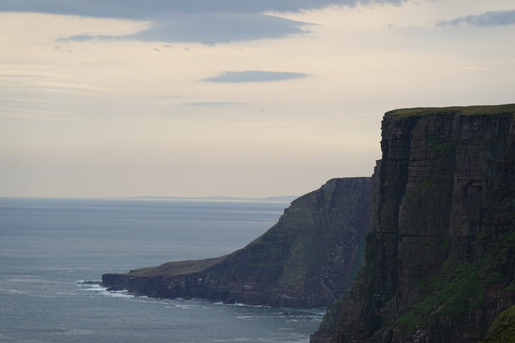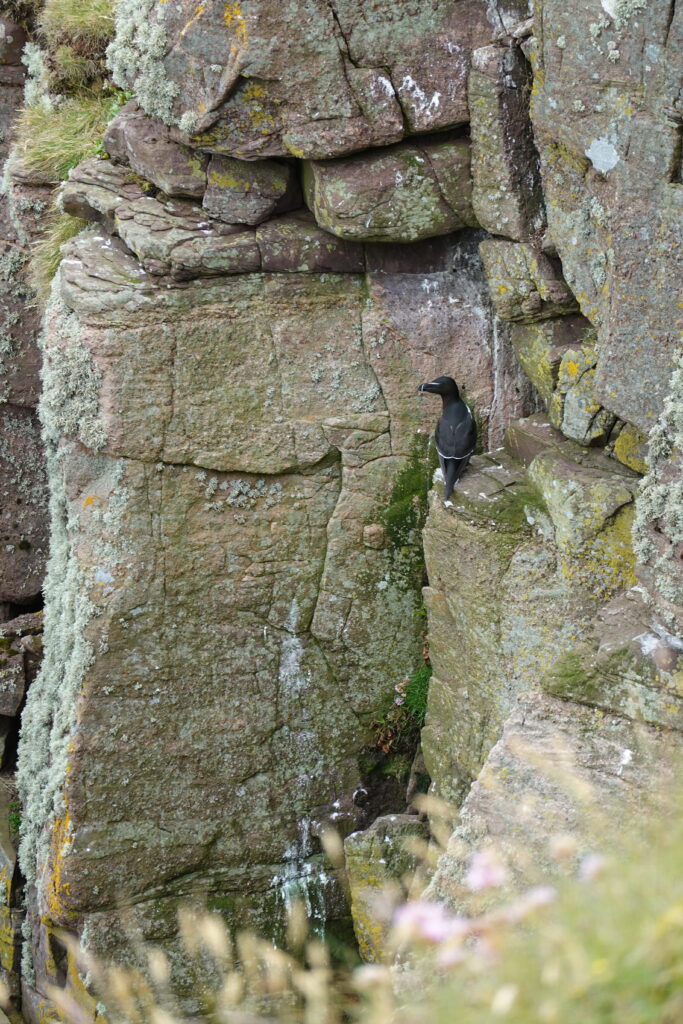 On a encore marché un peu après notre petit-déjeûner, pour explorer un peu plus la côte. On a vu d’impressionnantes colonies de guillemots et razorbills en contrebas, et deux skuas — ces “pirates des mers”, connus pour chiper le butin des autres oiseaux.