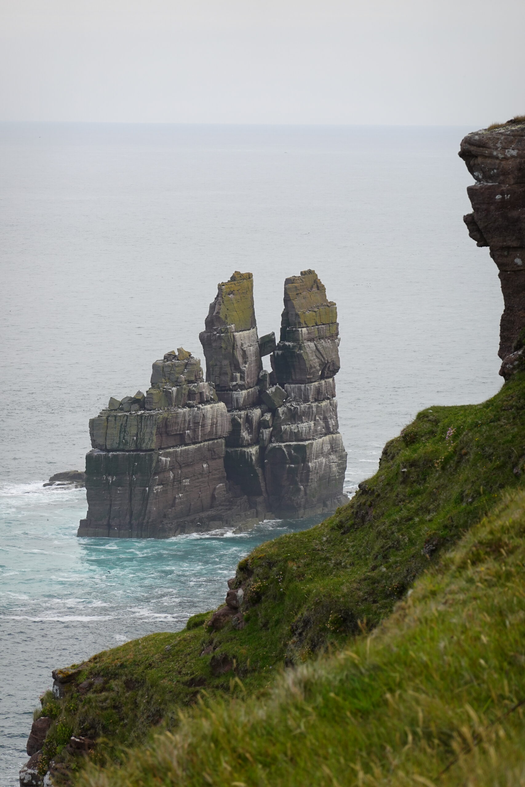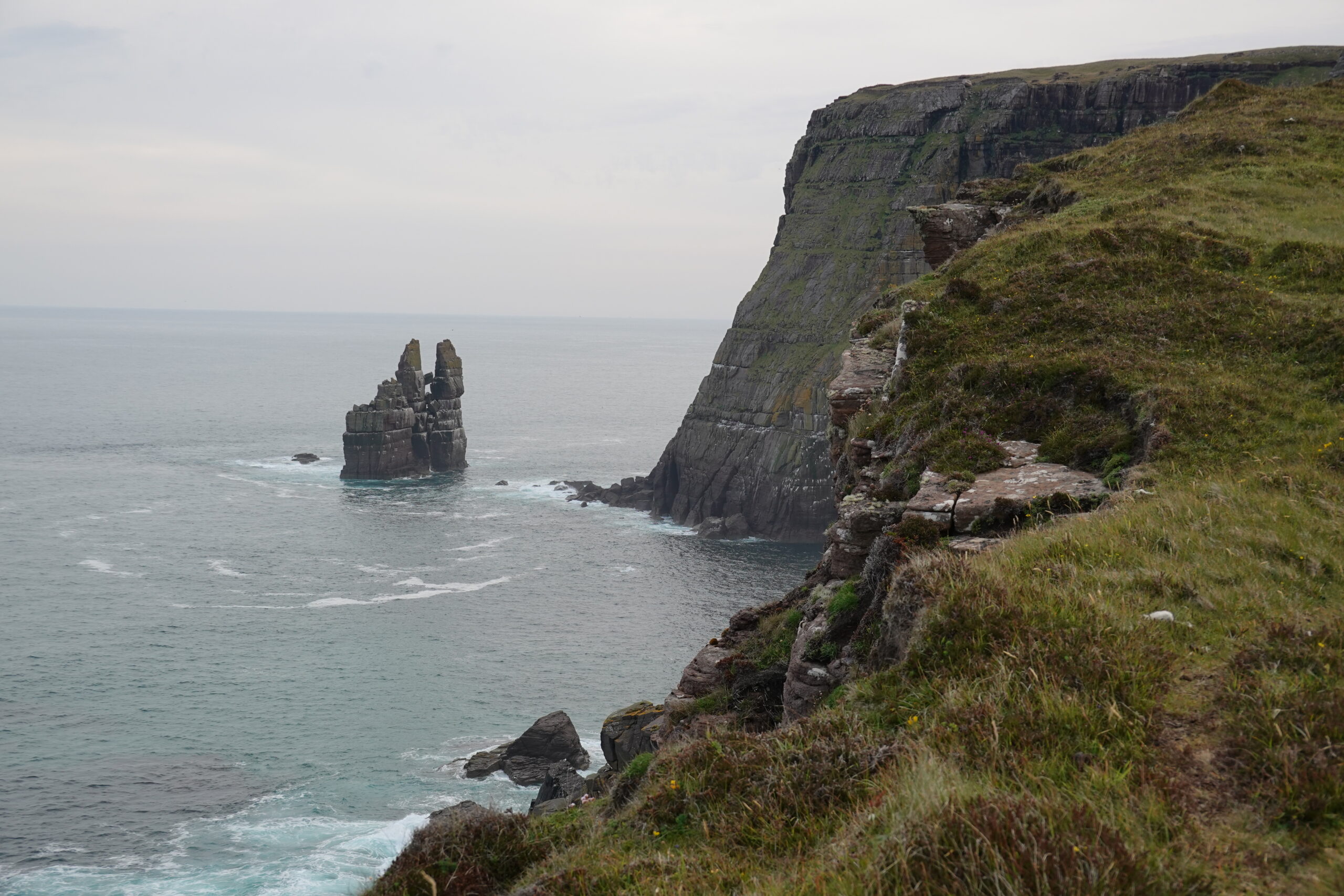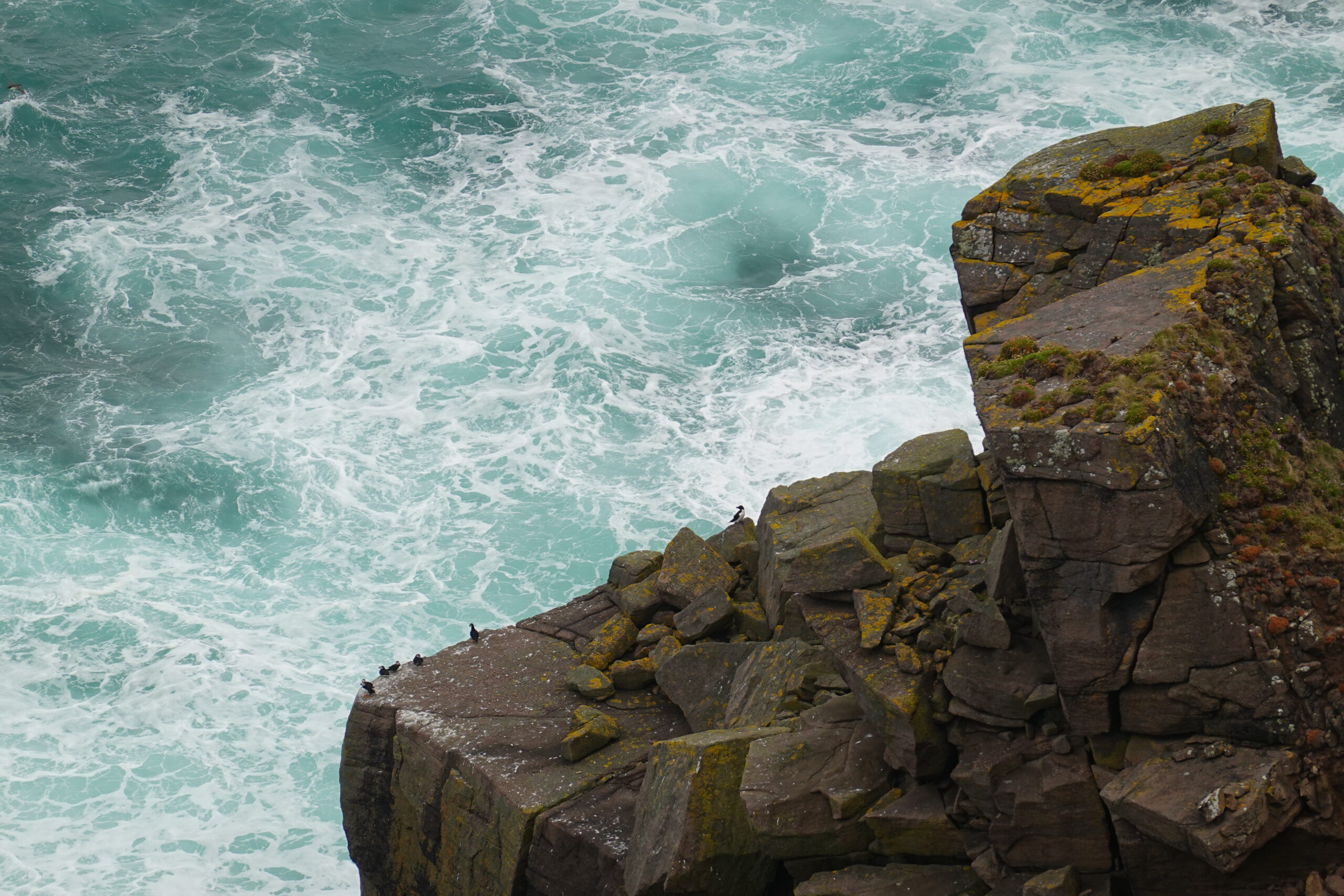 On a encore marché un peu après notre petit-déjeûner, pour explorer un peu plus la côte. On a vu d’impressionnantes colonies de guillemots et razorbills en contrebas, et deux skuas — ces “pirates des mers”, connus pour chiper le butin des autres oiseaux.