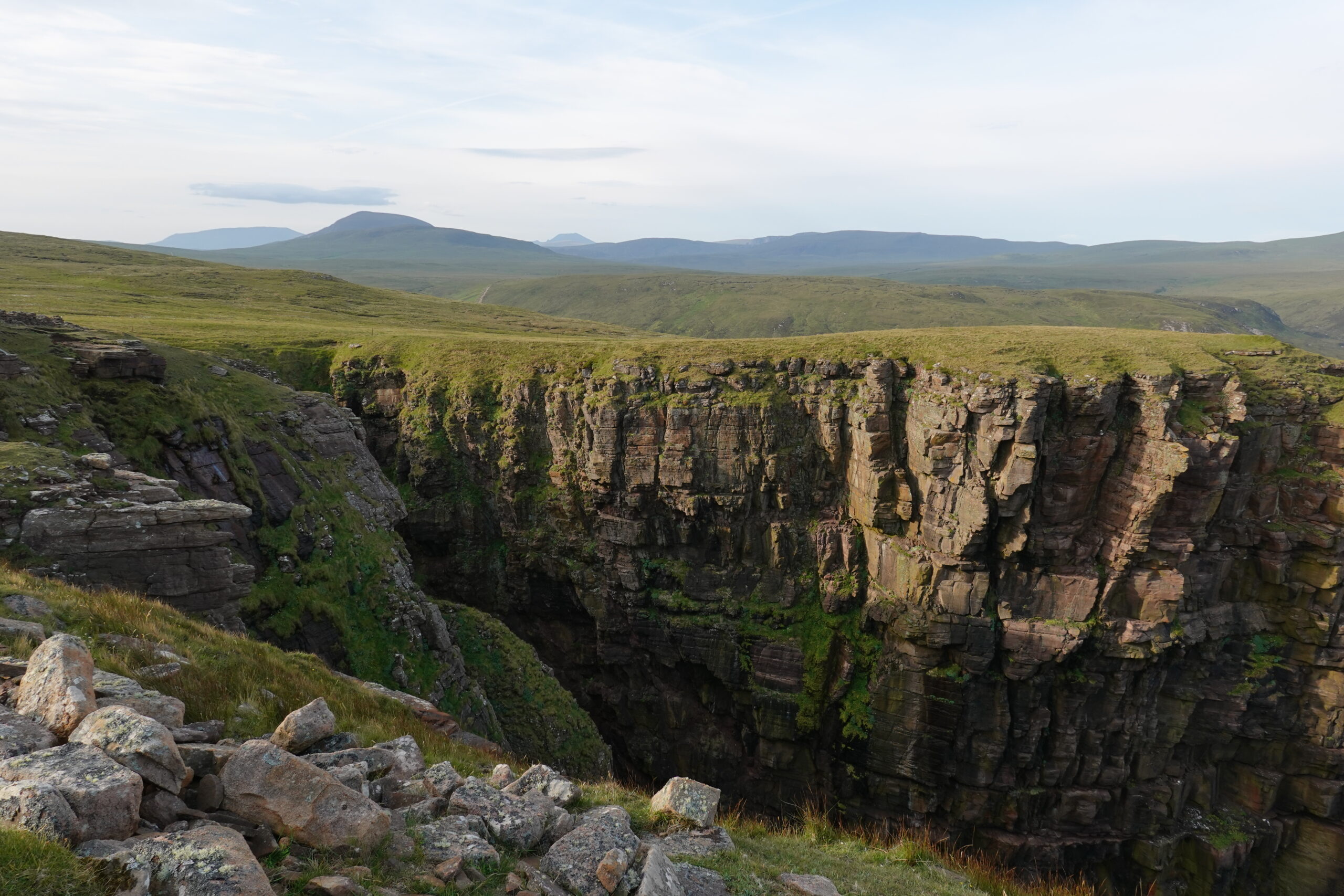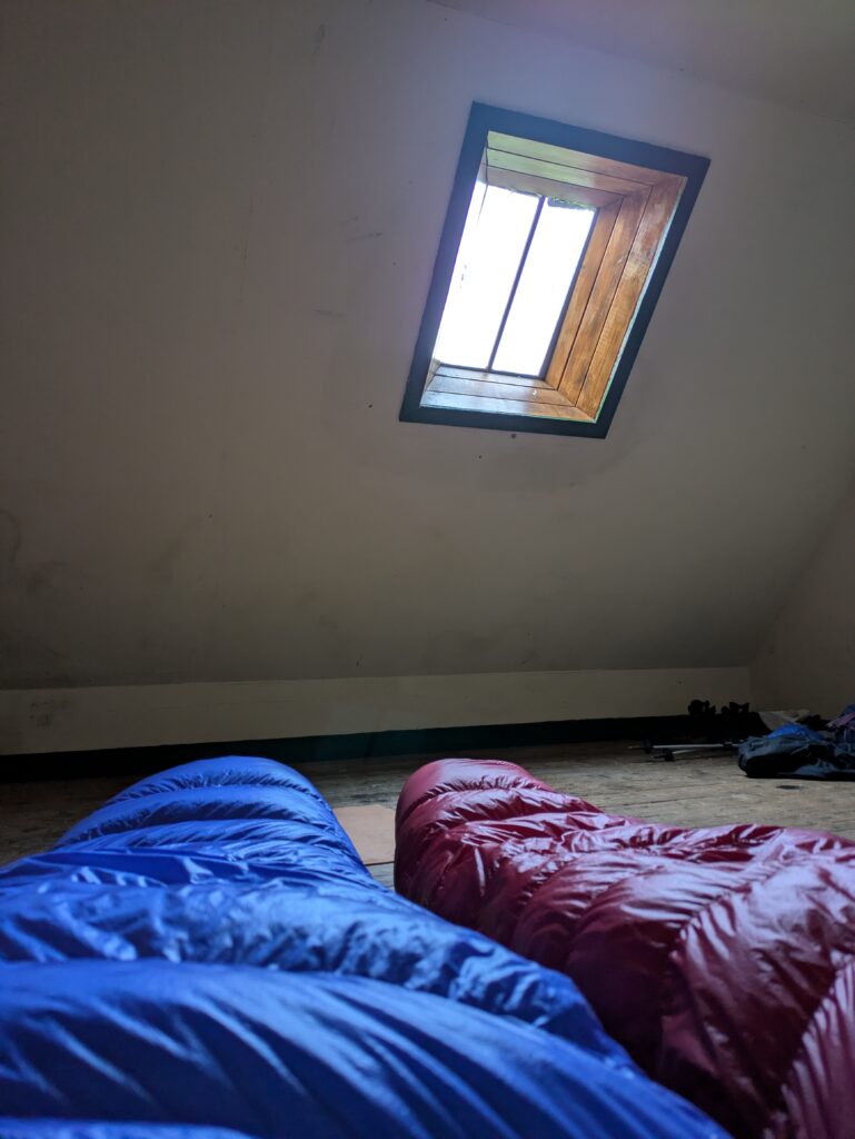 Notre nuit à Kearvaig Bothy a été plutôt courte, entre les fortes voix des bourrés jusque tard dans la nuit, puis les ronflements et, enfin, la lumière très matinale. Après 5h40, impossible de me rendormir. On s’est donc levés tôt, avant 6h30, on a embarqué tout ce qu’il nous fallait pour notre petit-déj’, et on est partis se promener.