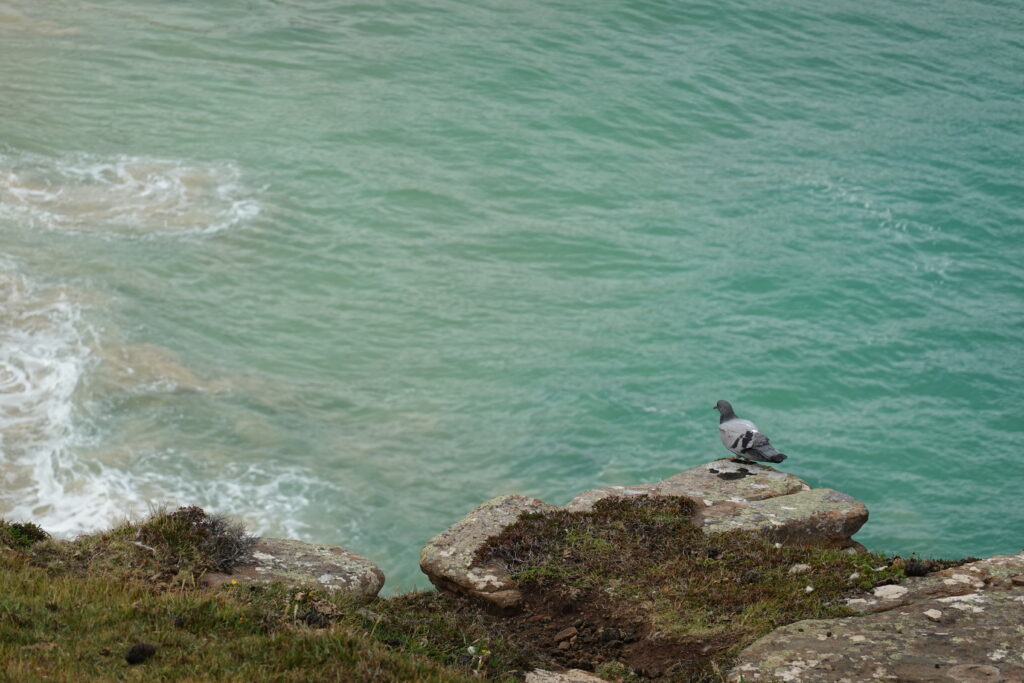 On a revu des puffins au pied des falaises, sur leur rocher, puis on a croisé un pigeon, ça faisait longtemps! Et un pigeon dans un tel cadre paradisiaque (oui, oui, carrément!), ça faisait encore plus longtemps!