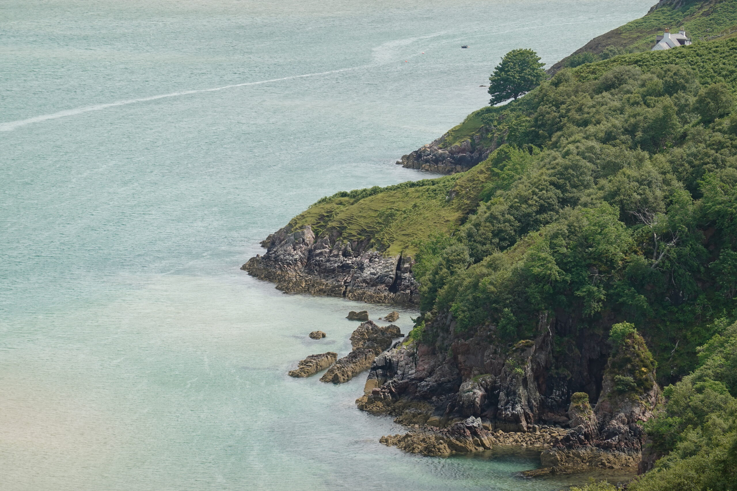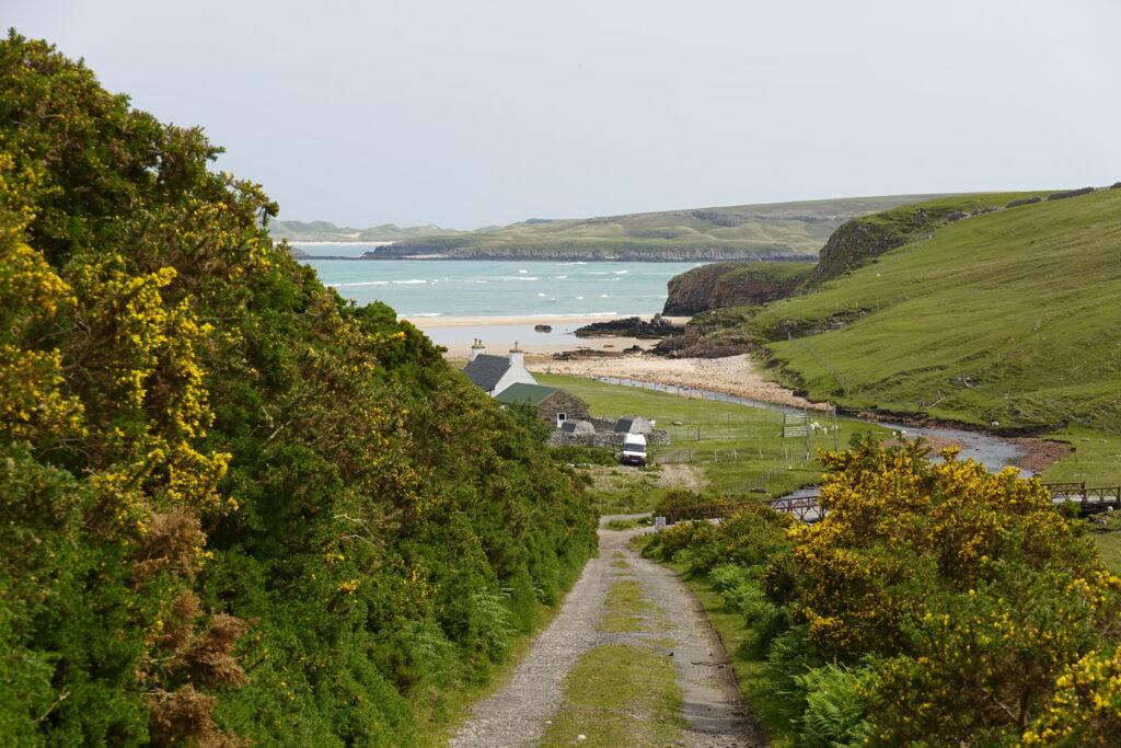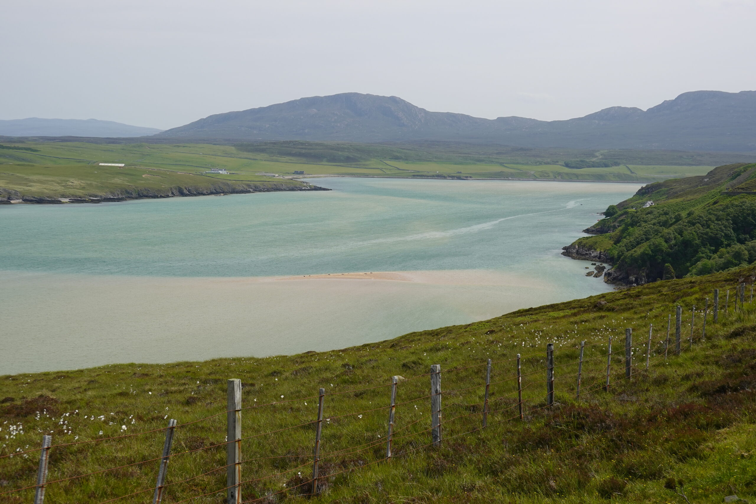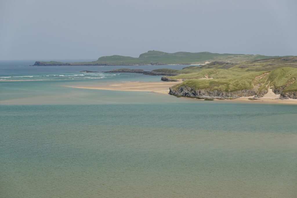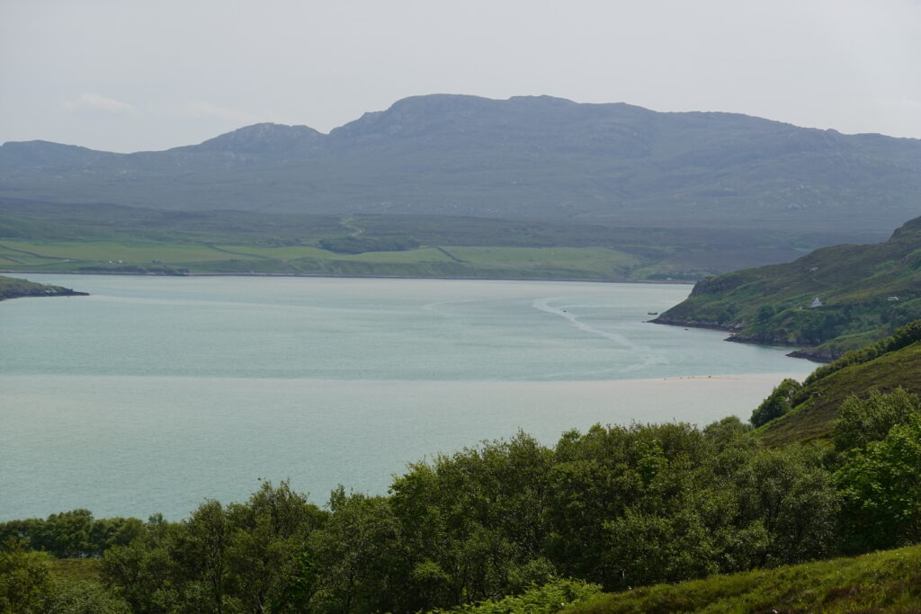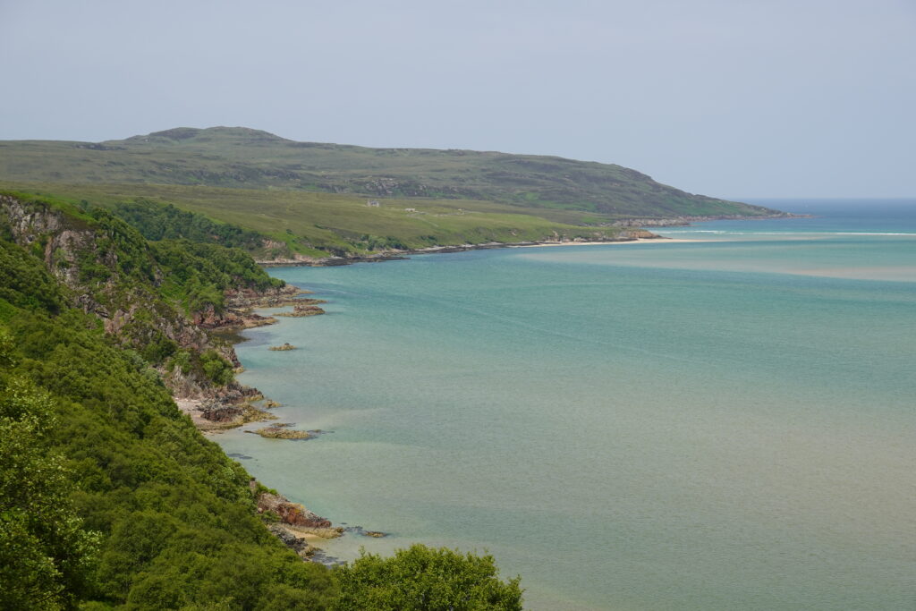 Arrivés au bord du Kyle of Durness, les vues étaient incroyables, avec une belle eau turquoise.
