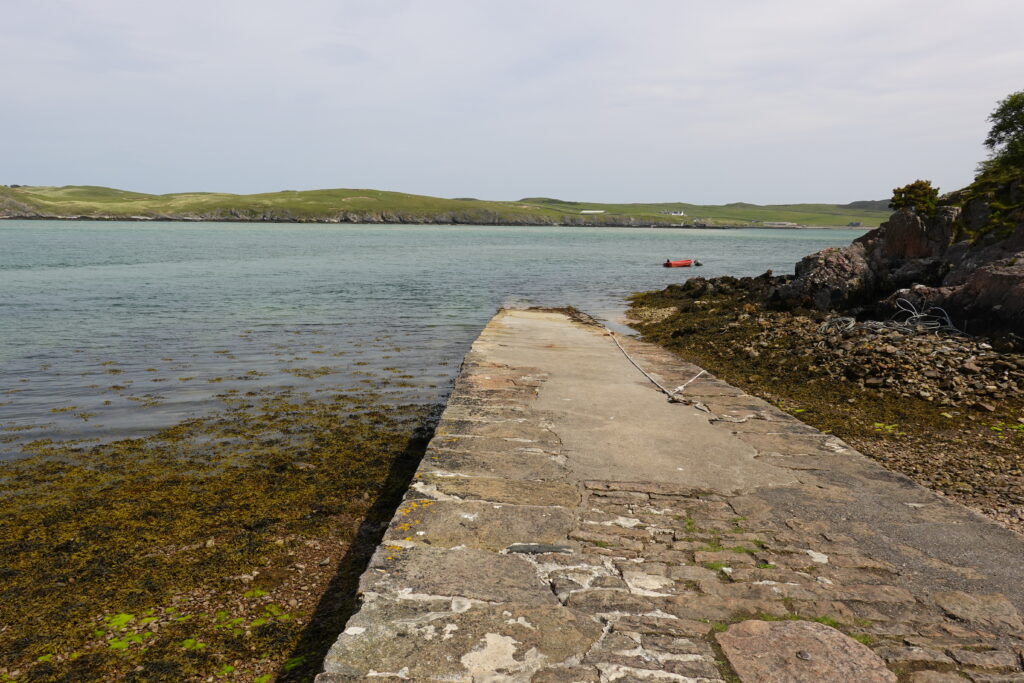 Il nous fallait rallier le petit ferry de Keoldale, situé à environ 12 km de Kearvaig. On espérait pouvoir choper le minibus en cours de route, mais il était plein (ce qu’on avait anticipé, heureusement, car sinon on aurait peut-être attendu pour rien!)
