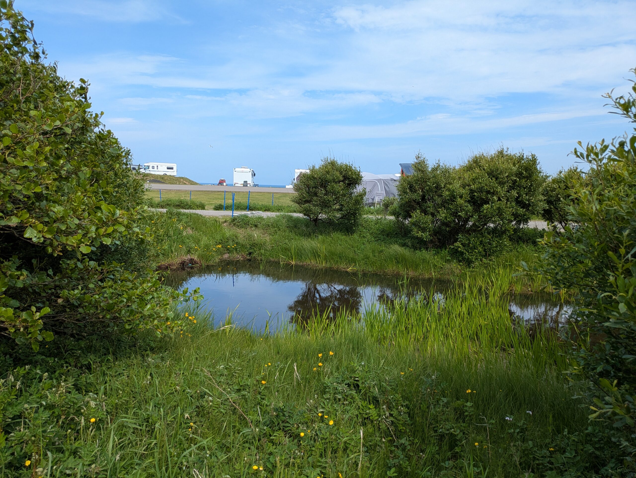 Il faisait chaud et venteux, surtout le matin, et c’était assez fatigant (le vent était de face, bien sûr ^^), donc on était bien contents d’arriver à la jetée… où il n’y avait aucune info pour le ferry. Heureusement, on avait le numéro de téléphone (et du réseau!). Malheureusement, personne ne répondait. Pourtant, sur le site internet, le ferry est censé être “à la demande” durant cette période, sans horaire précis ni besoin de réserver à l’avance. José essayait d’appeler toutes les cinq minutes, en vain.
